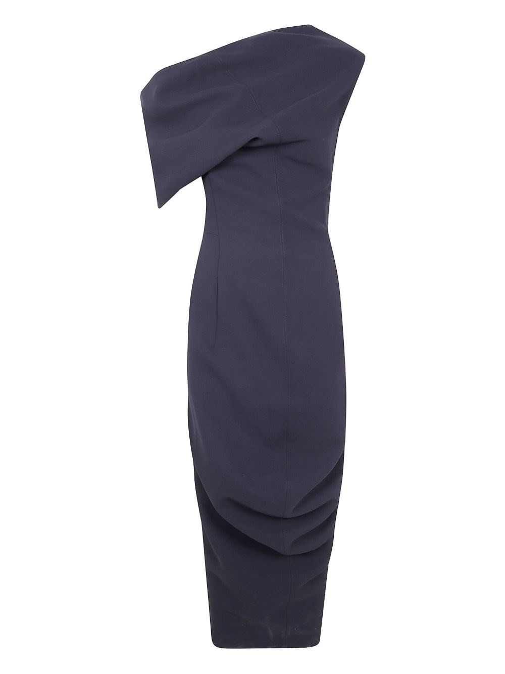 Black compact viscose crepe dress. Asymmetrical draped neckline. A thin shoulder strap. A draped sleeve. Low-cut and draped back. Invisible zip on the back. product code: DRW00691AW00632990 COMPOSITION 70% polyester, 30% viscose MADE IN FRANCE