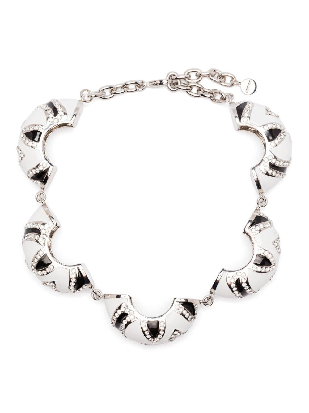 Silver brass necklace with two-tone enamel with zebra motif effect. Inlaid rhinestones. Engraved logo. product code: 251JW72751009DZ COLLANA COMPOSITION 92% brass - 5% enamel - 3% other fibers MADE IN ITALY