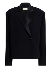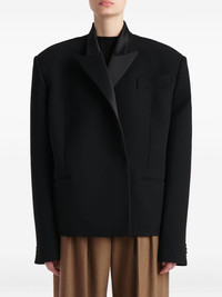 Crepe blazer with sculptural back and asymmetrical hem. Oversized line. Welt pockets. product code: 62084114W4114200 COMPOSITION 100% polyester MADE IN ITALY