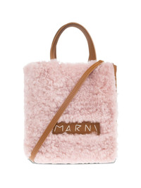 Pink shearling and brown leather tote bag. Two top leather handles. Internal clutch bag with leather zip. Removable leather shoulder strap. Logo application. product code: SHMP0040L8P8680ZO995 COMPOSITION 100% lamb fur, 100% calf leather; Lining: 95% cotton, 5% acrylic MADE IN ITALY SIZE & FIT Depth: 12 cm; Height: 22 cm; Width: 20 cm.