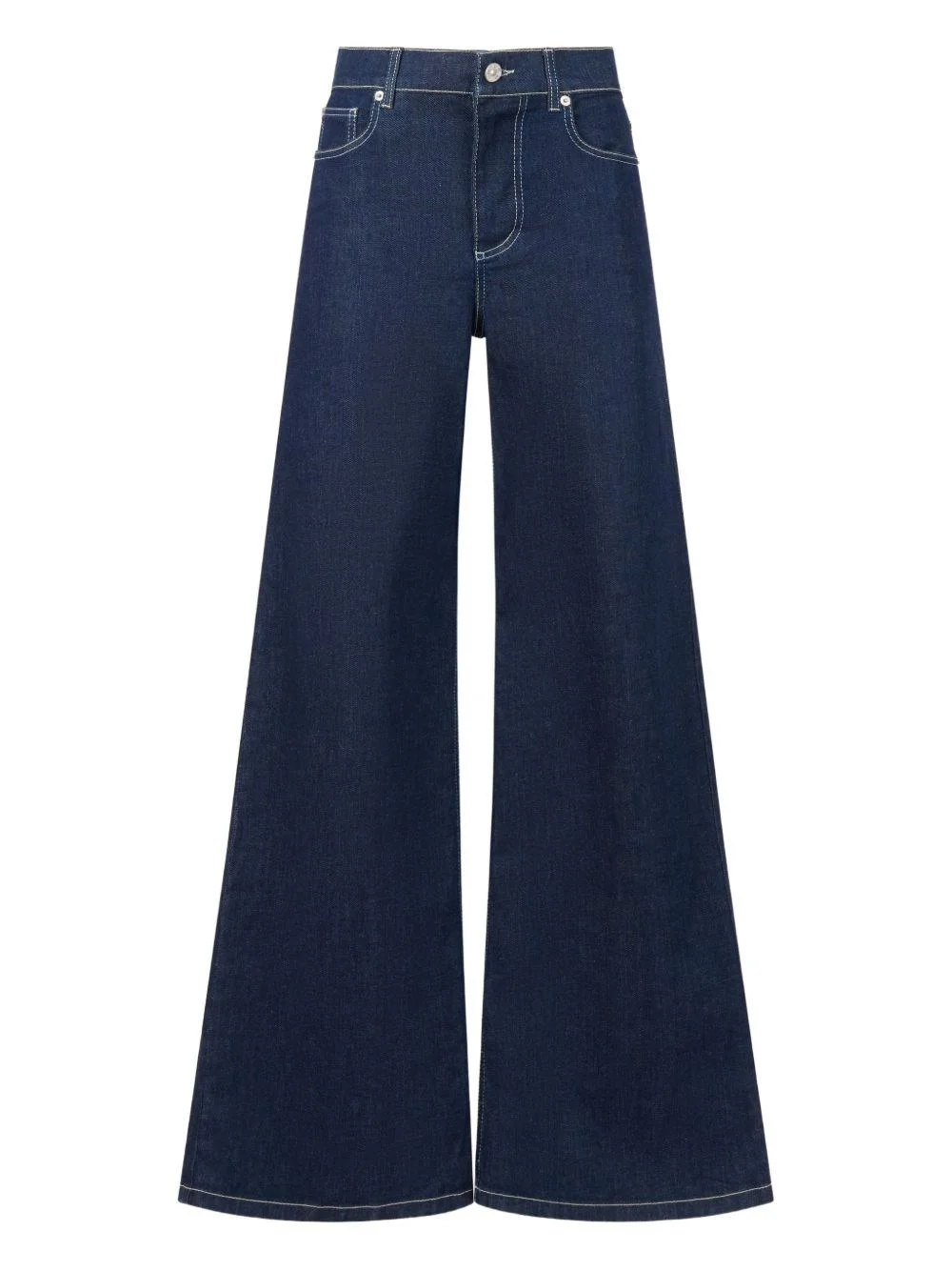 DEEP BLUE STRETCH DENIM WIDE-LEG JEANS