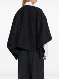 Black alpaca and wool cape with rectangular design to wear closed with a pin or open with maxi lapels. Maxi label Max Mara in the corner. product code: 2524546081600005 SERRA COMPOSITION 55% alpaca, 25% polyamide, 20% wool. MADE IN ITALY