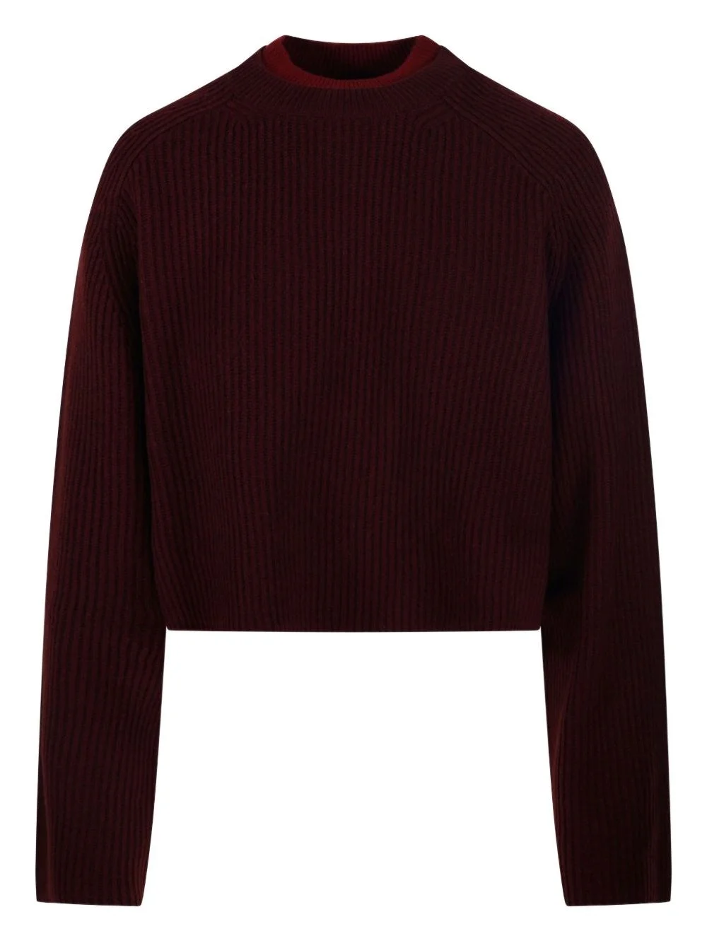 Crop sweater characterized by an English rib workmanship. Boxy fit. Two-tone double layer effect collar. product code: 2521366172600021 FUNALE COMPOSITION 70% wool, 30% cashmere. MADE IN CHINA