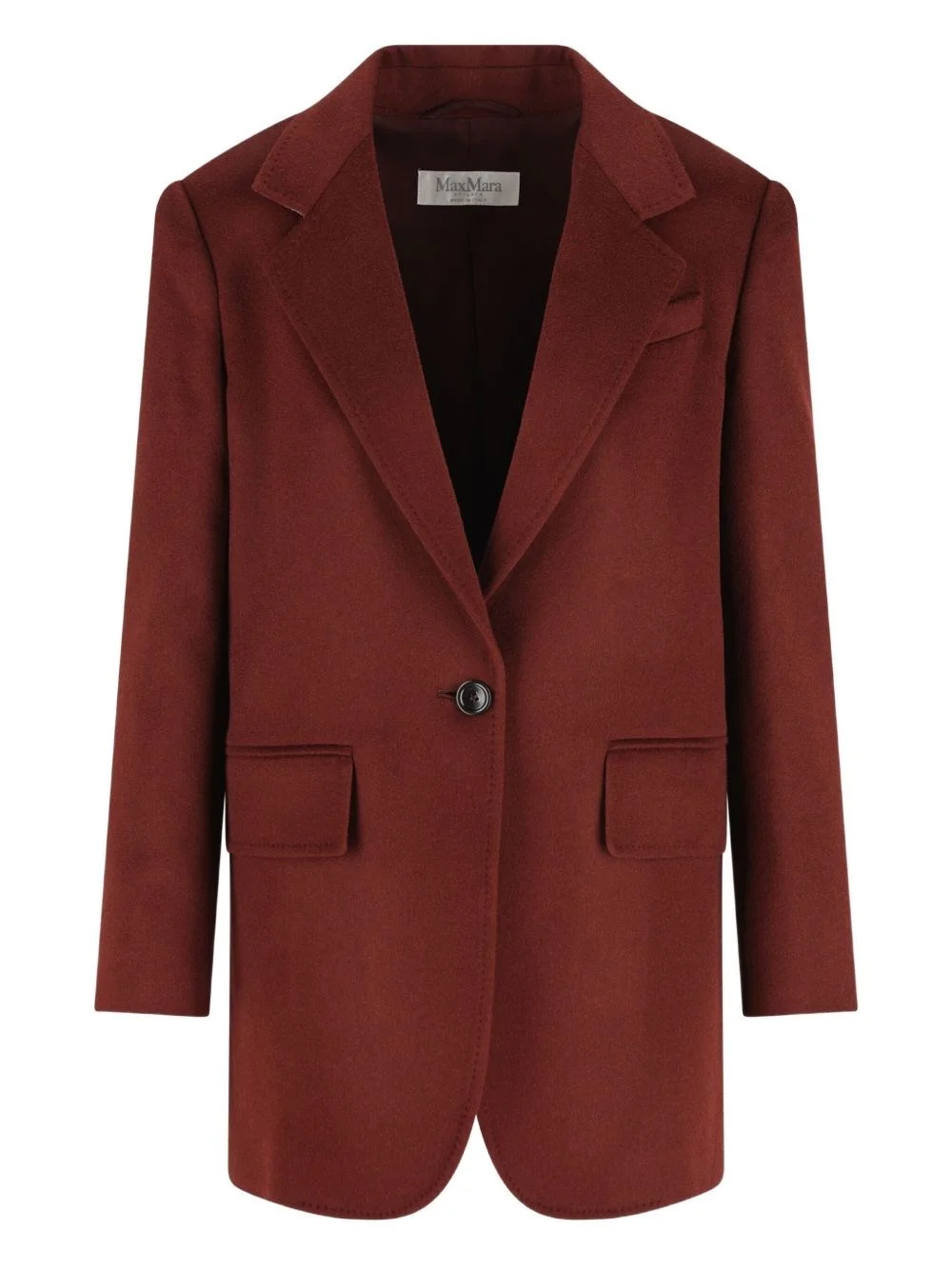 Blazer in light drap of baby camel sable. Silhouette straight and slightly elongated. Oversized line with side slits at the back. Long sleeves with side splits and buttons on the bottom. Single button closure. Chest pocket and flap welt pockets on the front. Lined. product code: 2521046243600043 ARICCIA1234 COMPOSITION 100% camel; Lining 65% acetate, 35% polyester. MADE IN ITALY