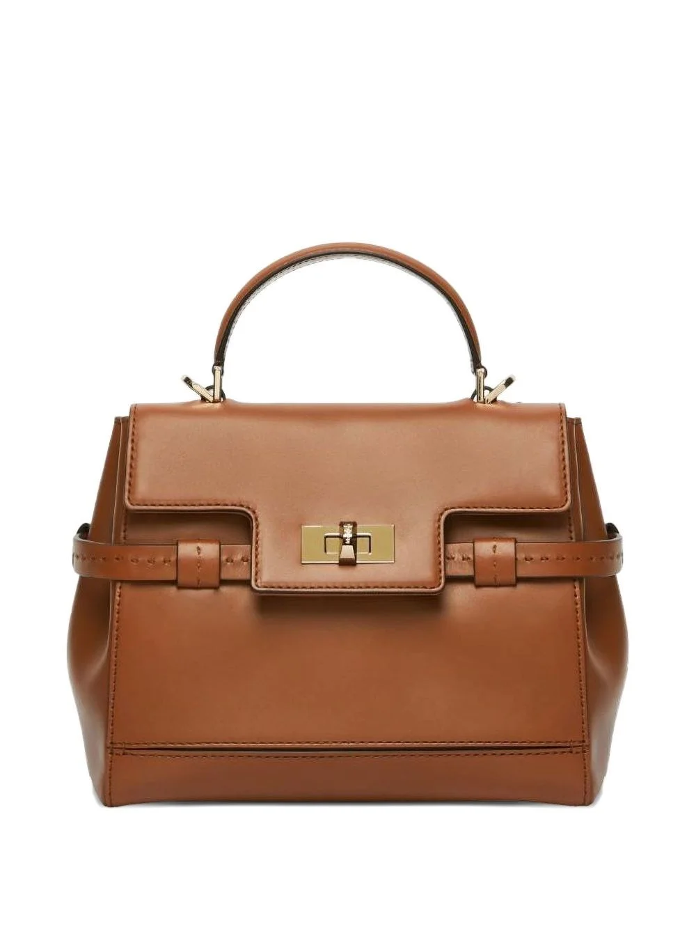 Smooth calf leather handbag. Suede lining with zip pocket and patch pocket with M-profile. Single handle. Detachable shoulder strap. Flap closure with metal swivel. Max Mara lettering printed on the front and metal on the back. Metal feet. product code: 2524516242600002 MARGAUXTH25 COMPOSITION 100% calf leather; 100% goat leather MADE IN ITALY SIZE & FIT 21 x 12 x 20 cm