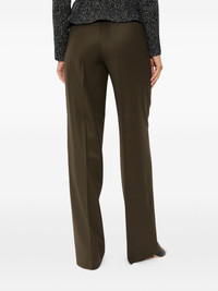Pure green wool gabardine pants with high waist and wide leg. High waist strip closure, zip with flap and hook. Pockets on the sides. Back welt pockets. Stretched fold and pleats sewn at the waist on the back. Lined. product code: 2521136263600009 ARTURO1234 COMPOSITION 100% virgin wool. MADE IN ITALY