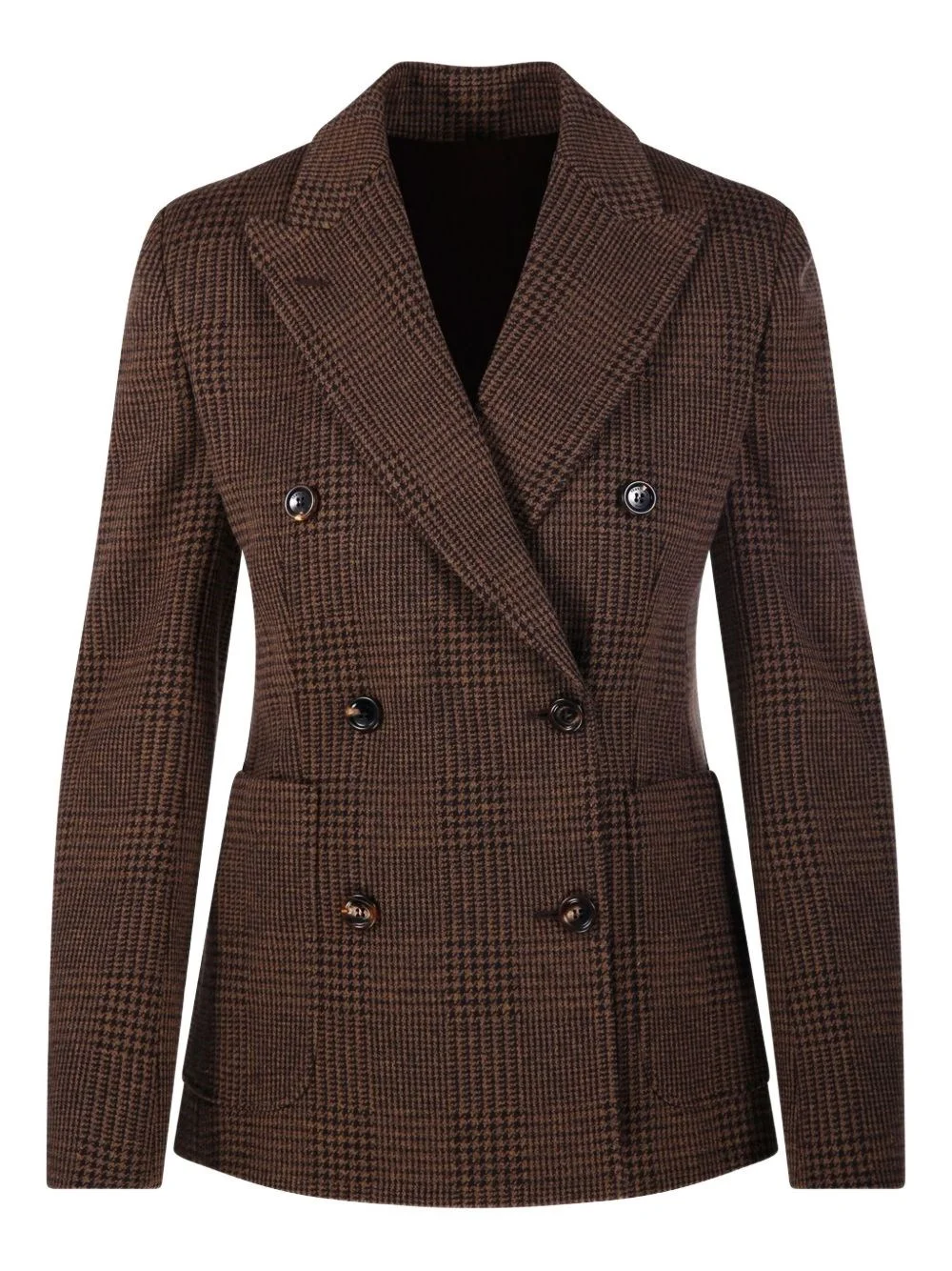 Double-breasted houndstooth cotton-blend blazer Brown