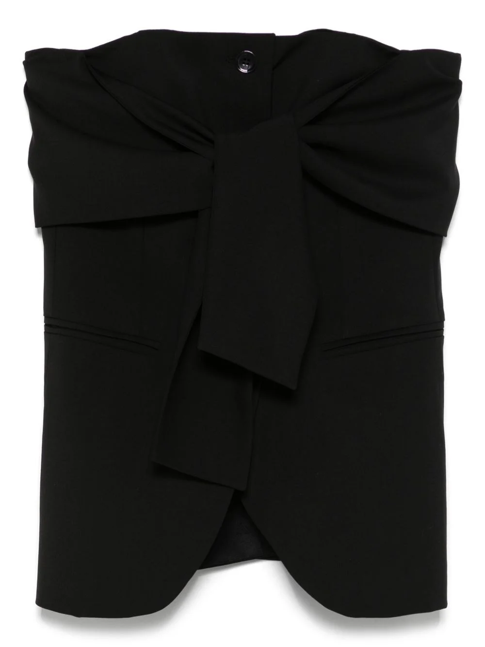 Blazer-inspired bustier top with bow knotted on the front. Inner bodice with slats. Lined. product code: 2521166031600004VERUSKA COMPOSITION 100% virgin wool; Lining 1: 65% acetate, 35% polyester; Lining 2: 100% cotton. MADE IN ITALY