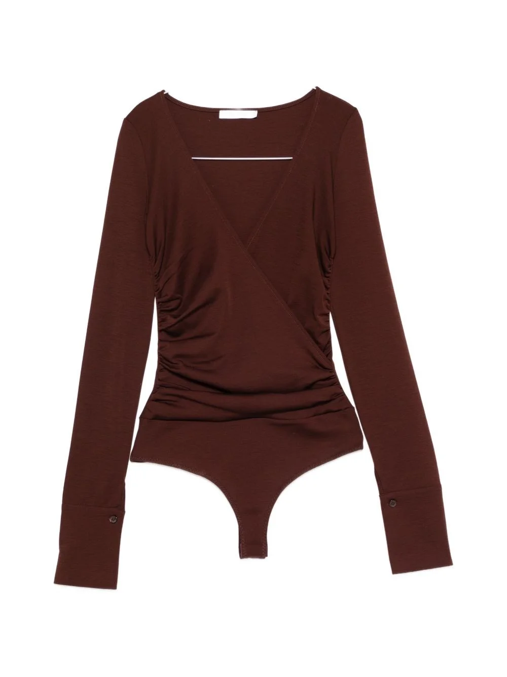 Pure wool jersey bodysuit. Crossed V-neck. Long sleeves with high shirt cuffs. Snap button closure on the bottom. product code: 2521946069600002 NIGELLA COMPOSITION 100% wool MADE IN ITALY