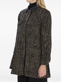 Wool tweed jacket with patch pockets with flap applique on the front in Saharan style. Straight line. Leather shirt collar. Round sleeves with shirt cuffs and snap button. Front closure with hidden zip. Side slits at the back. Lined. product code: 2521086143600003 ANGIO12334 COMPOSITION 93% virgin wool, 7% polyamide; Lining 100% viscose MADE IN ITALY