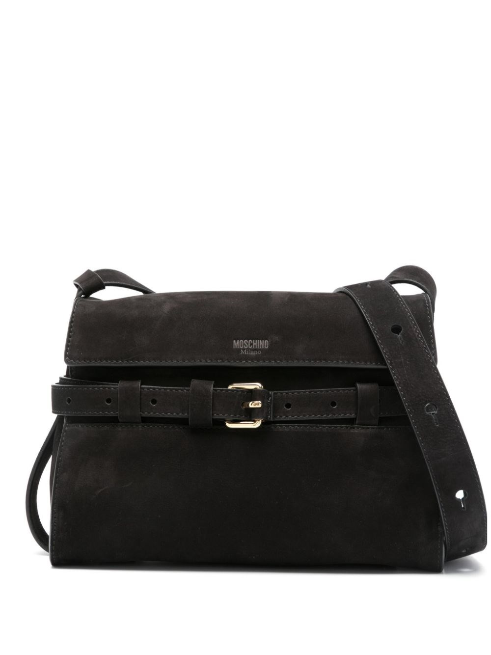 Nubuck shoulder bag. Detachable decorative belt. Two internal compartments. Inside pocket with zip and credit card slot. Flap with magnetic closure. product code: 2422A758180350555 COMPOSITION 100% calf leather MADE IN ITALY