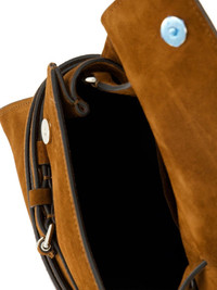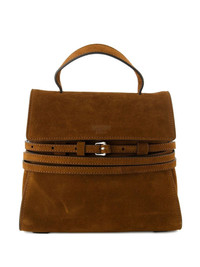 Suede handbag. Fully detachable decorative belt that wraps around the bag. Top handle. Magnetic closure under the flap. Small patch pocket inside. product code: MC4226PP0NOF030A COMPOSITION 100% Calf leather; Lining: 100% cotton MADE IN ITALY SIZE & FIT Height: 18 cm; Width: 20 cm; Depth: 11 cm.