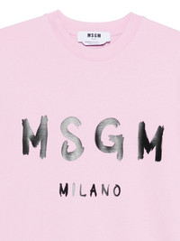 Pink crewneck sweatshirt with contrast logo print on the chest. Ribbed cuffs and waist. product code: 3940MM51325779913 COMPOSITION Made in Italy 100% cotton