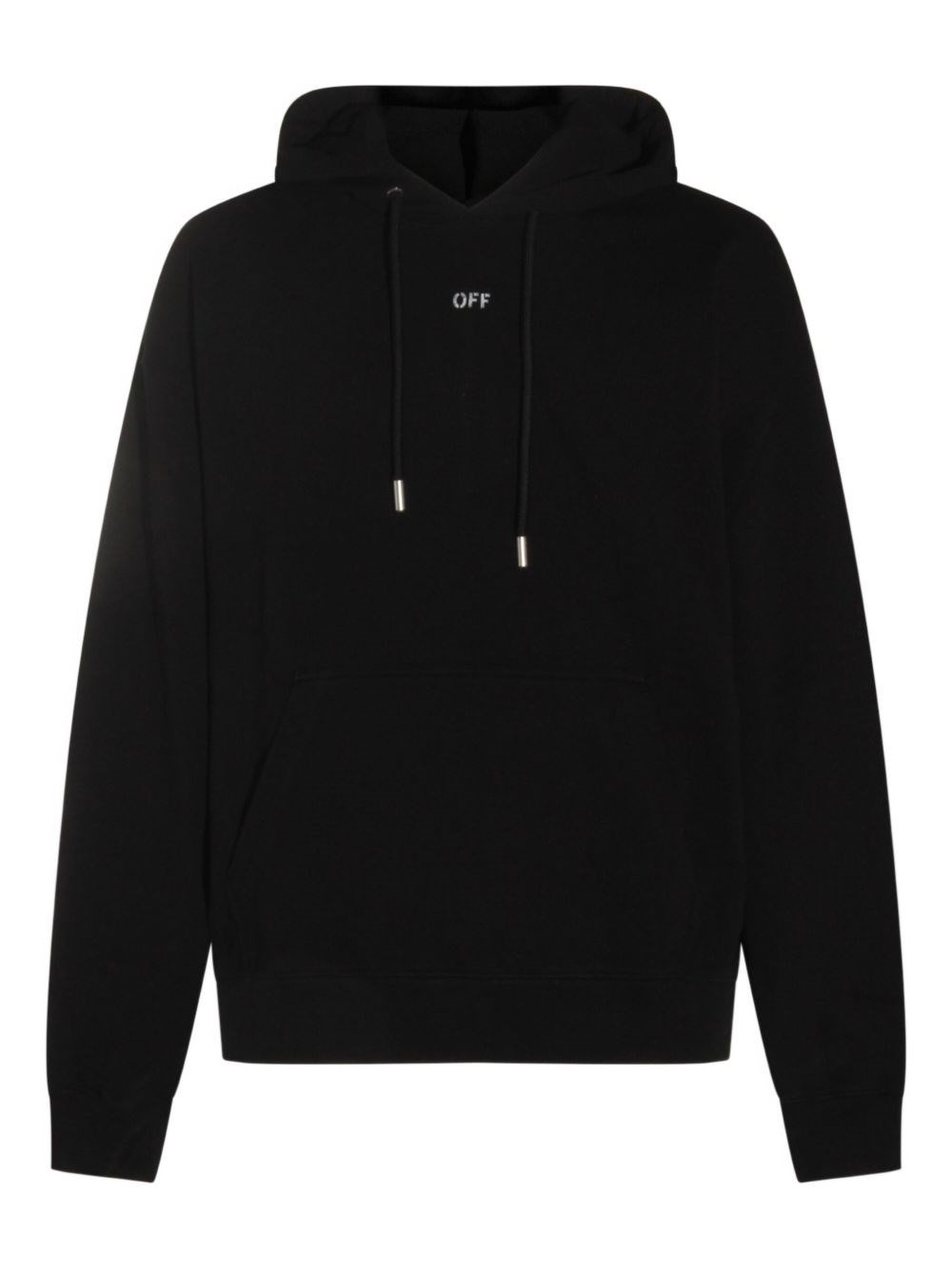 Black hoodie with contrast beige logo print on the chest and back. Kangaroo pocket. Ribbed cuffs and waist. product code: OMBB085F25FLE00C1001 COMPOSITION Made in Portugal 100% cotton