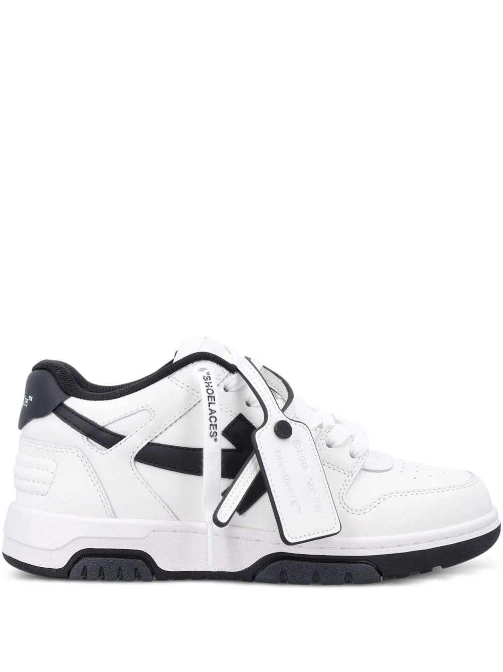 Recycled leather and polyester sneakers with rubber sole. Arrow detail and Zip-Tie label. product code: OWIA259C99LEA0180110 OUT OF OFFICE COMPOSITION 11% recycled polyester, 89% leather MADE IN CHINA