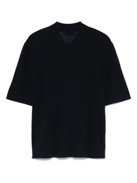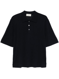 Blue polo shirt with classic collar, front button fastening and short sleeves. product code: S25MKNT301NIGHT SKY COMPOSITION Made in Portugal 70% lyocell 25% cotton 5% silk