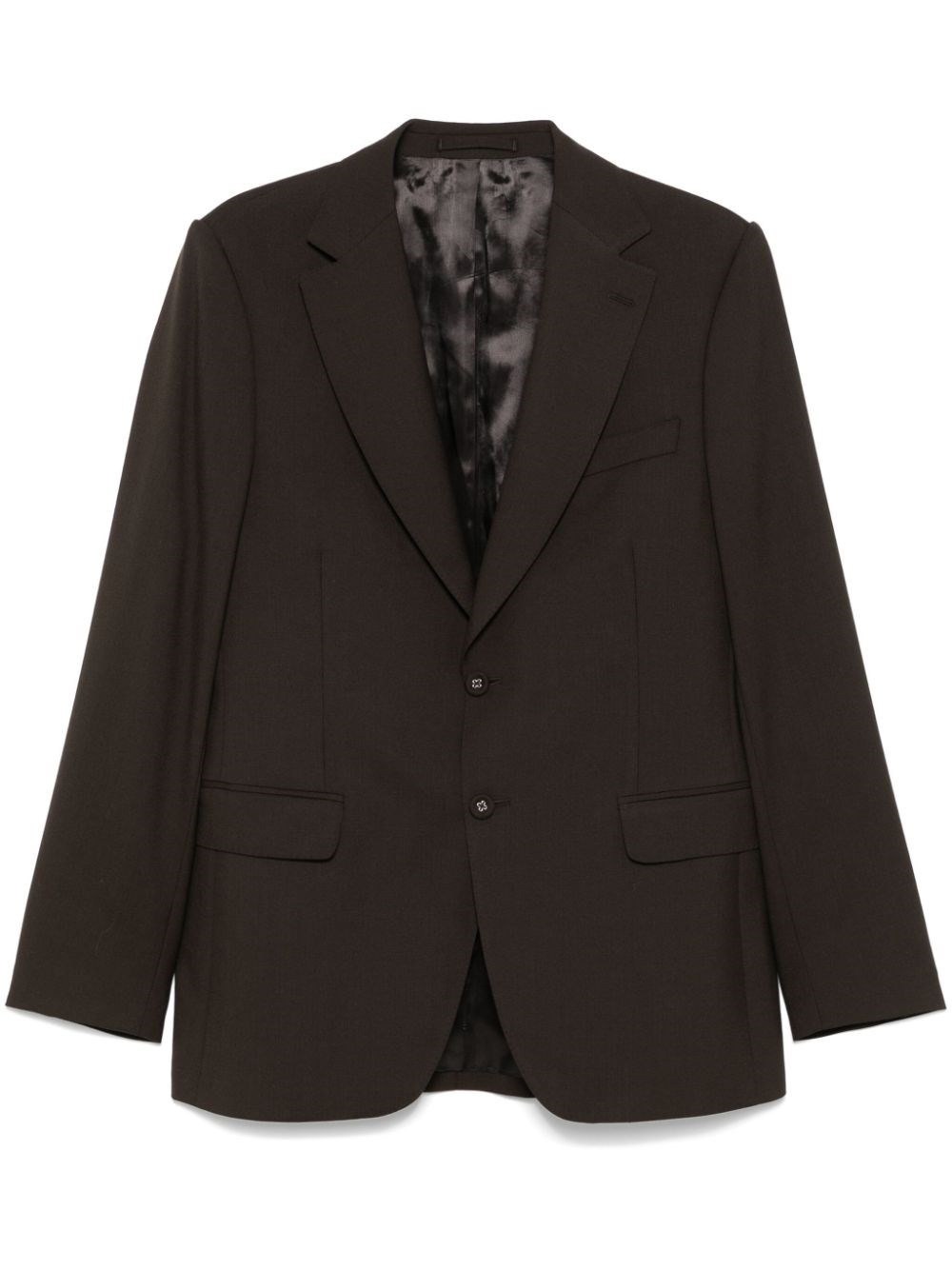 Dark brown blazer with classic lapels, front button fastening and flap pockets. product code: W24MTLG401DARKCOFFEE COMPOSITION Made in Portugal 100% virgin wool