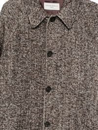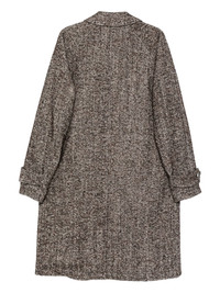 Melange brown single-breasted coat with collar, front button fastening and side pockets. product code: W25MCTS652ICEDCOFFEE/ECRU COMPOSITION Made in Portugal 45% cotton 25% polyester 14% polyamide 8% virgin wool 5% polyacrylic 3% other materials