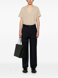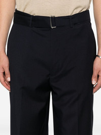 Blue pants with concealed front closure, belt and straight-leg fit. Side and back pockets. product code: S25MTLG473DARK NAVY COMPOSITION Made in Portugal 100% wool