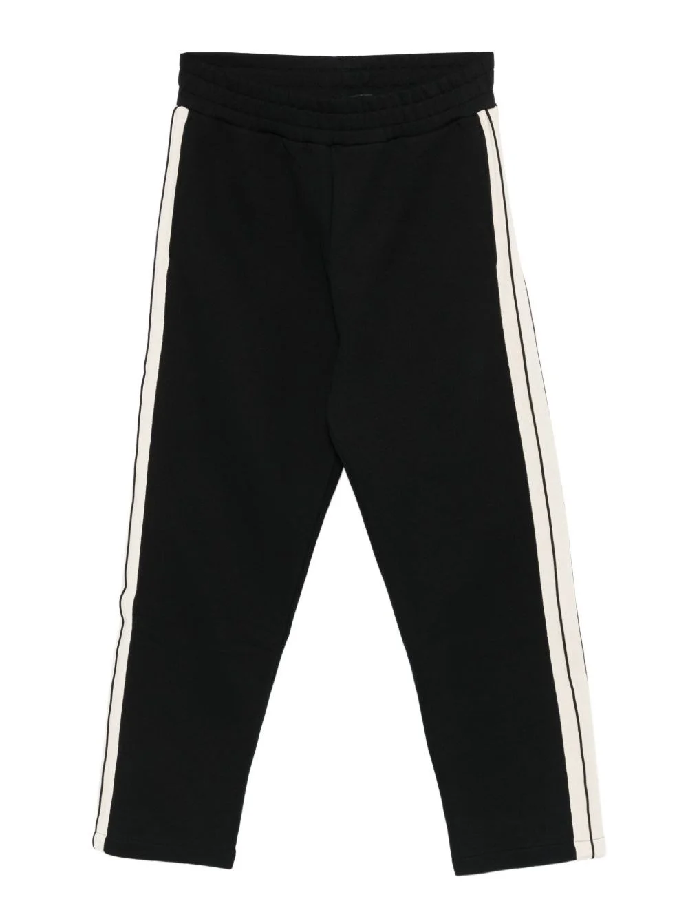 Black pants with elastic waistband, welt pockets and contrast side bands. Logo print on the back. product code: PMCH02KF25FLE0011003 COMPOSITION Made in Portugal 100% polyester