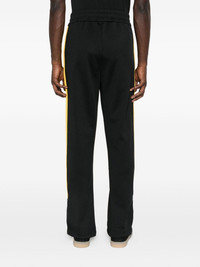 Black sports pants with elastic waistband, front logo embroidery and contrast side bands. Welt pockets. Zip at the ankles. product code: PMCJ020F25FAB0011018
