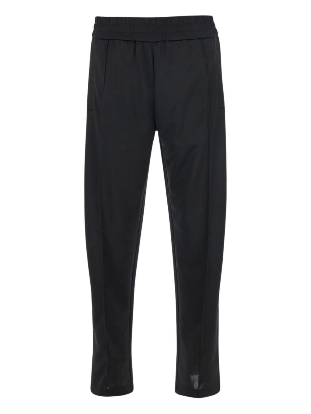 Black pants with elastic waistband, side pockets and contrast logo print on the chest. product code: PMCJ048C99FAB0011003 COMPOSITION Made in Portugal 100% polyester