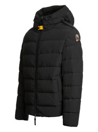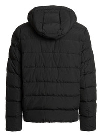 Black quilted down jacket with hood and logo zip closure. Side pockets. product code: PMPUTT020541 COMPOSITION Made in Indonesia 100% goose down 100% polyamide