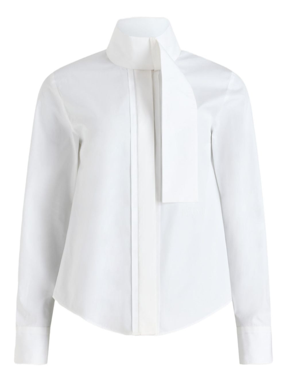 Elixir bio cotton blouse. Scarf collar with loop on the front. Front closure with concealed buttoning. Patou logo embroidered on the front. product code: BL0450017001W COMPOSITION 100% organic cotton MADE IN MADAGASCAR