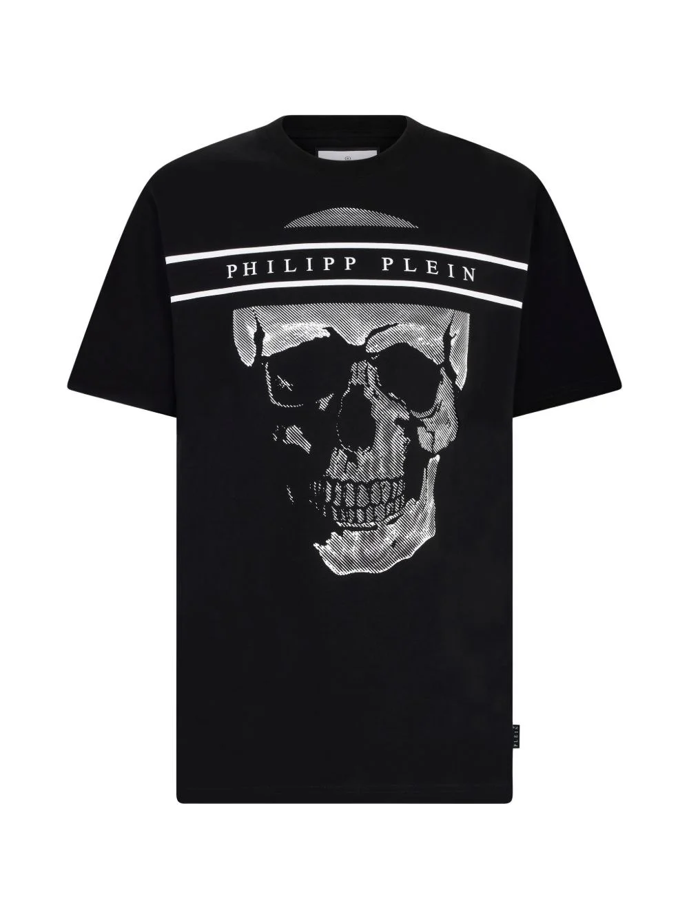 Black T-shirt with short sleeves and contrasting front logo print. product code: SAFCMTK8881PJY002N02 BLACK COMPOSITION Made in Turkey 100% cotton
