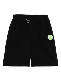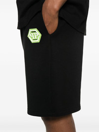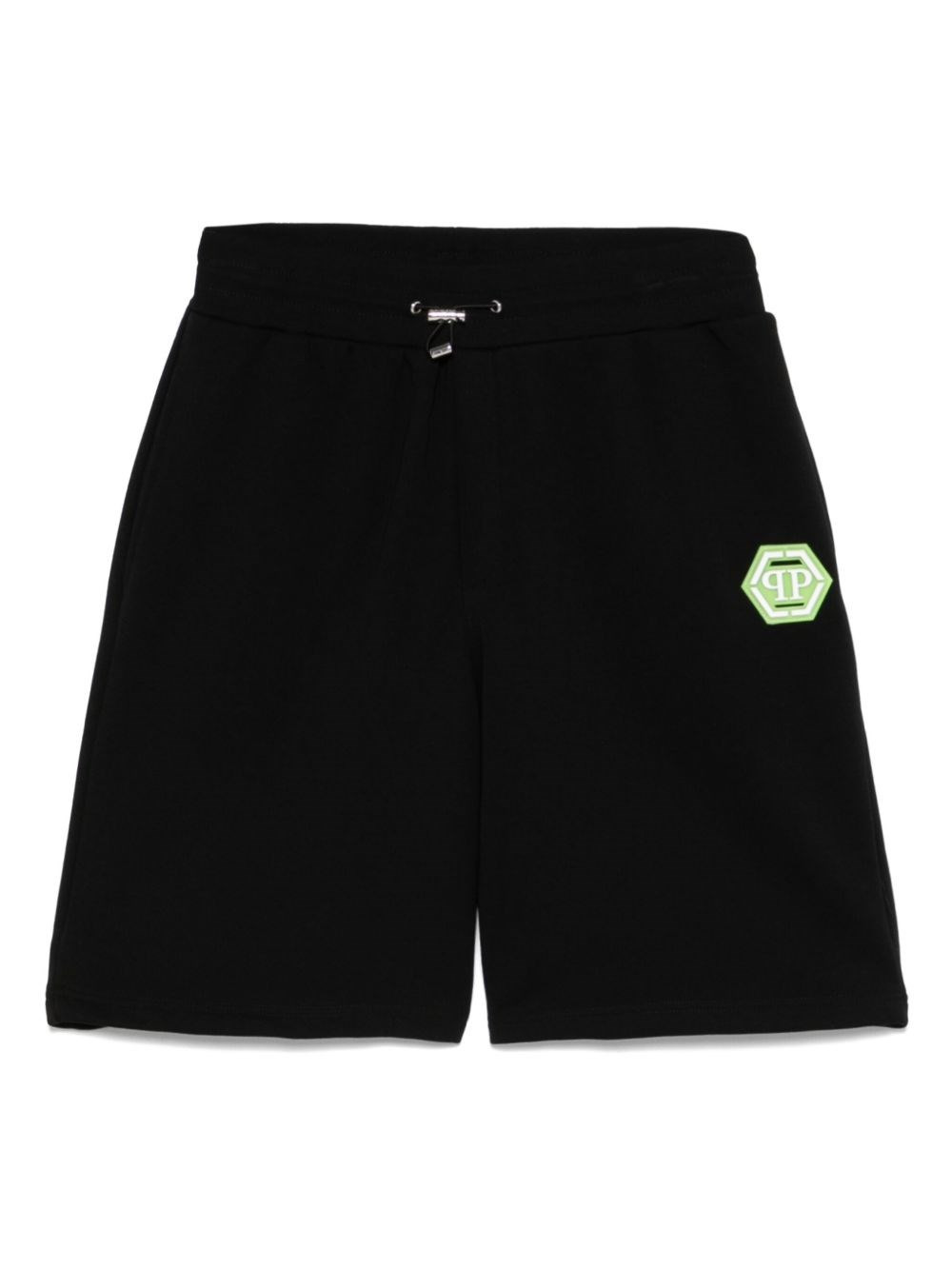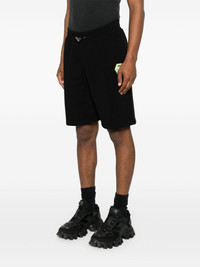 Black shorts with elastic waistband, green front logo patch and side pockets. Contrasting logo print on the back. product code: PAECMJT2517PTE003N0205 COMPOSITION Made in Tunisia 88% cotton 12% polyester
