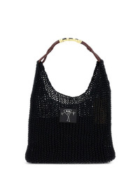 Linen mesh bag with polyester handle. Rubber patch with "Bianca" print. Inner cotton lining. product code: SHCBF51A01FL00100N99 COMPOSITION 90% linen 6% polyurethane 3% polyester 1% viscose Lining 100% cotton MADE IN ITALY