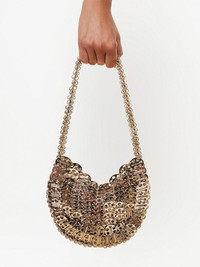 Gold bag with brass elements assembled by hand using metal eyelets. product code: 23PSS0337MET002P711 COMPOSITION 100% brass MADE IN THAILAND SIZE & FIT 21x38x2.5 cm