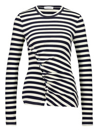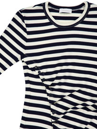 Striped stretch wool sweater with draped details and silver snap buttons. product code: 25AJTO142LA0344M128 COMPOSITION 98% virgin wool, 2% elastane MADE IN PORTUGAL