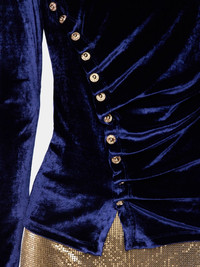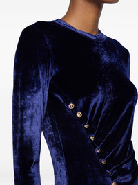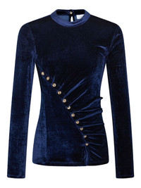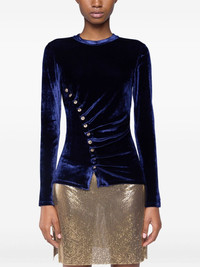 Velvet top with draped details and jewel snap buttons. product code: 25AJTO708VI0338P432 COMPOSITION 77% Viscose, 21% Polyamide, 2% Elastane MADE IN PORTUGAL