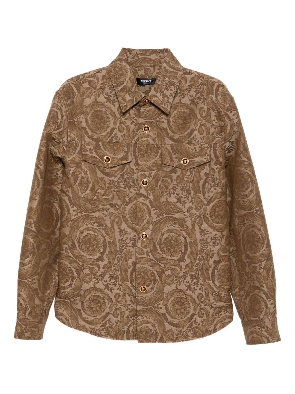 Brown jacket with all-over baroque print. Classic collar, logo buttons and chest pockets with flap and button. product code: 10174131A150001K020 COMPOSITION Made in Italy 100% cotton