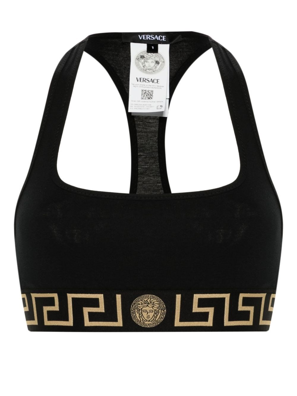Cotton bralette with rowing back and round neckline. Stretch Greek edge with central Medusa pattern. product code: AUD010391A10011A1008 COMPOSITION 94% cotton, 6% elastane MADE IN ITALY
