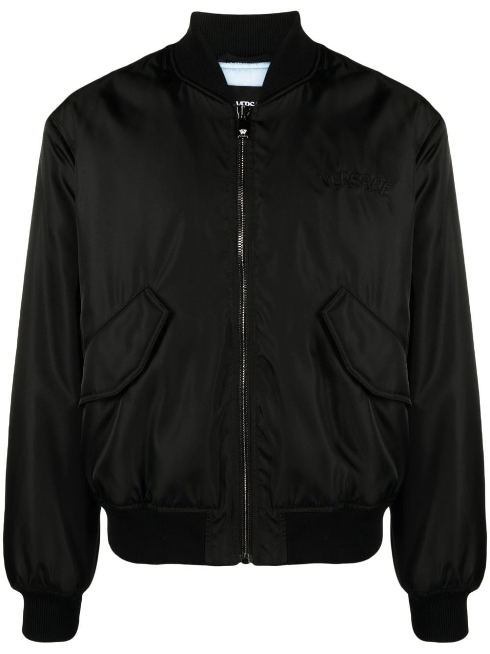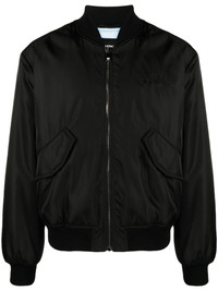 Black bomber jacket with zip closure, flap pockets and tone-on-tone logo embroidery on the chest. Contrast logo embroidery on the back. Ribbed neck, cuffs and waistband. product code: 10139291A098481B000 COMPOSITION Made in Italy 100% polyamide
