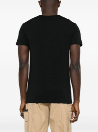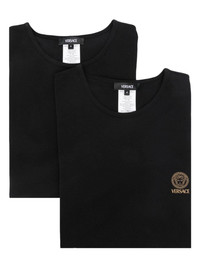 Blue T-shirt with short sleeves and gold logo print on the chest. product code: AU101931A10011A1008 COMPOSITION Made in Italy 94% cotton 6% elastane