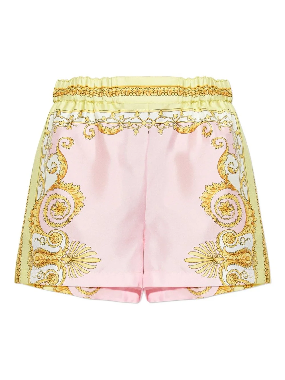 Silk shorts with iconic Barocco print. Side pockets. Elastic waistband. product code: 10204161A171585Y590 COMPOSITION 100% silk MADE IN ITALY