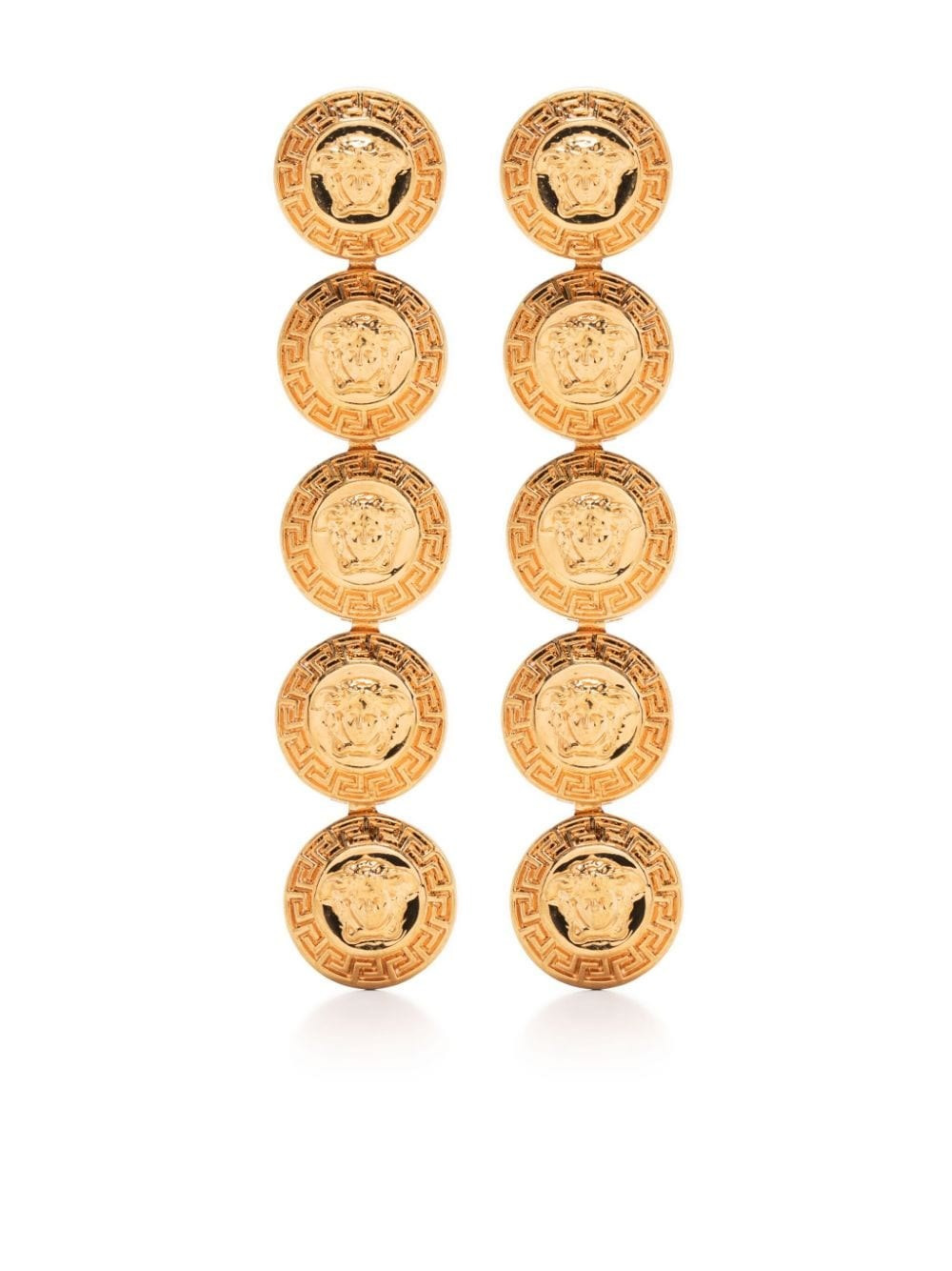 Pendant earrings with Medusa and Greek engraved medallions. Butterfly carabiner closure. product code: 10132661A006203J210 COMPOSITION 100% metal MADE IN ITALY