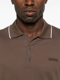 Brown polo shirt with short sleeves, classic collar and contrasting detail. Logo embroidery on the chest. product code: RUG358A2G746M06 COMPOSITION Made in Italy 100% cotton