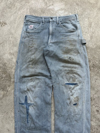 Distressed Vintage 80/90s Pointer Repair Stripe Pants Measurements: Inches Waist: 30” Inseam: 30” Length: 40” Leg opening: 9” Condition: Used 7/10 Shipping by USPS 7-14 days Dm if you have any questions 🫡