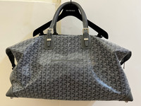 Authentic Goyard Bowling 55 travel bag in the classic Grey (Gris) Goyardine coated canvas with hand-painted chevron pattern. Iconic and extremely rare size — perfect as a carry-on, weekender, or luxurious everyday holdall. Condition: 95% New Details: Hand-painted Goyardine canvas (water-resistant & ultra durable) Natural cowhide leather trim & handles Silver hardware Clochette with two keys included Removable interior leather pouch Fully lined in signature Goyard textile Comes with original Goyard dust bag. 100% authentic – purchased directly from Goyard Paris. Happy to provide additional photos/receipt upon request. Dimensions: approx. 55 cm × 30 cm × 26 cm (21.6" × 11.8" × 10.2") – fits most airline carry-on requirements.