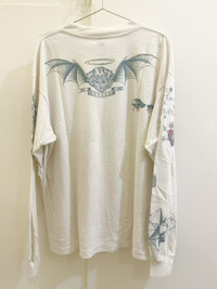 Elevate your ink-inspired archive with this Saint Michael x Dr. Woo collab from the 25AW collection—a tattoo artistry meets streetwear masterpiece that's already a collector's whisper. Saint Michael, the LA-Tokyo powerhouse by Yuta Hosokawa and Cali Thornhill DeWitt, joins forces with legendary single-needle tattooist Dr. Woo to infuse fine-line motifs into premium apparel. This long-sleeve tee channels Woo's signature subtlety: heavyweight 7oz organic cotton French terry (100% for that plush, structured drape), garment-dyed in a faded wash for instant vintage patina. The all-over screenprint is pure artistry—delicate linework tattoos cascading from the cuffs up the sleeves (think minimalist florals, sacred geometry, and subtle script). Ribbed crewneck holds shape, drop shoulders add relaxed volume, and thumbhole cuffs lock it in for layering under bombers or solos. L sizing runs true-to-size (pit-to-pit ~22", length ~27", sleeves ~25.5"—measured flat), with room for that effortless boxy silhouette. Worn once for fit pics—still infused with that high-end dye freshness, no print migration or fabric softening yet. A locked grail for tattoo enthusiasts, SM archivists, or anyone chasing that refined collab heat. Key Specs: Brand/Model: Saint Michael x Dr. Woo Long Sleeve T-Shirt (25AW Collab Collection) Material: 100% Organic Cotton (7oz French Terry, Garment-Dyed) Color: White (with fine-line white graphic print) Size: L (True to size; relaxed fit with thumbholes) Condition: 95% Shipping: Ships securely within 3 days with tracking. Let me know if you need any further details, happy shopping!