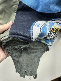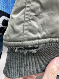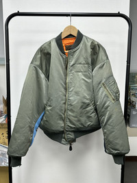 This vintage-inspired MA-1 flight jacket from SAINT MICHAEL showcases the brand's dedication to meticulous craftsmanship and distinctive design. Constructed from 100% nylon, it features a khaki shell with intentional distressing, including fading, color variations, and minor holes, imparting a well-worn, authentic vintage aesthetic. Key Features: Intentional Distressing: The jacket exhibits deliberate fading, color variations, and minor holes, giving it an authentic, worn-in vintage look. Contrasting Sleeve Material: The undersides of the sleeves feature bold, contrasting materials, adding a unique and eye-catching element to the classic MA-1 silhouette. Premium Construction: Crafted from 100% nylon for the outer shell, with a 100% polyester lining and insulation comprising 70% wool, 10% nylon, 5% rayon, and 5% acrylic, ensuring both durability and warmth. The ribbed trims are made from 100% wool for a snug fit. Unique Design Elements: The jacket's design includes special sewing techniques and prints, reflecting the brand's dedication to creating a real vintage feel. Handcrafted in Japan, this piece exemplifies SAINT MICHAEL's commitment to quality and attention to detail. Please note that the distressing is a deliberate part of the design, and not indicative of flaws. Condition: 95% New This jacket is a testament to SAINT MICHAEL's innovative approach to reimagining classic styles with a contemporary twist. Ship worldwide. No trade and no return.