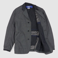 This distinctive reversible blazer jacket offers a harmonious blend of functionality and style, expertly crafted in Japan. The jacket is composed of a balanced blend of rayon, wool, denim and polyester, offering a smooth tactile quality and durable resilience. It features a distinctive design with multiple contrast front pockets, which serve a dual purpose of enhancing the practical and aesthetic appeal of the overall ensemble. The jacket is well-suited for those who value high-quality construction and thoughtful design elements. It is an optimal choice for layering in transitional weather, combining functionality with a sophisticated visual appeal. Relaxed fitted silhouette Medium= 38" to 40" Large= 42" to 44" X- Large = 46" to 48" - Outer: 45% wool, 55% Polyester - Inner: 53% Cotton Denim , 47% Nylon - Lining: 100% Cupro - Reversible style - Button closure - Two front pockets - Functional pockets on revers side - Reinforced patches on the sleeves - Made in Japan
