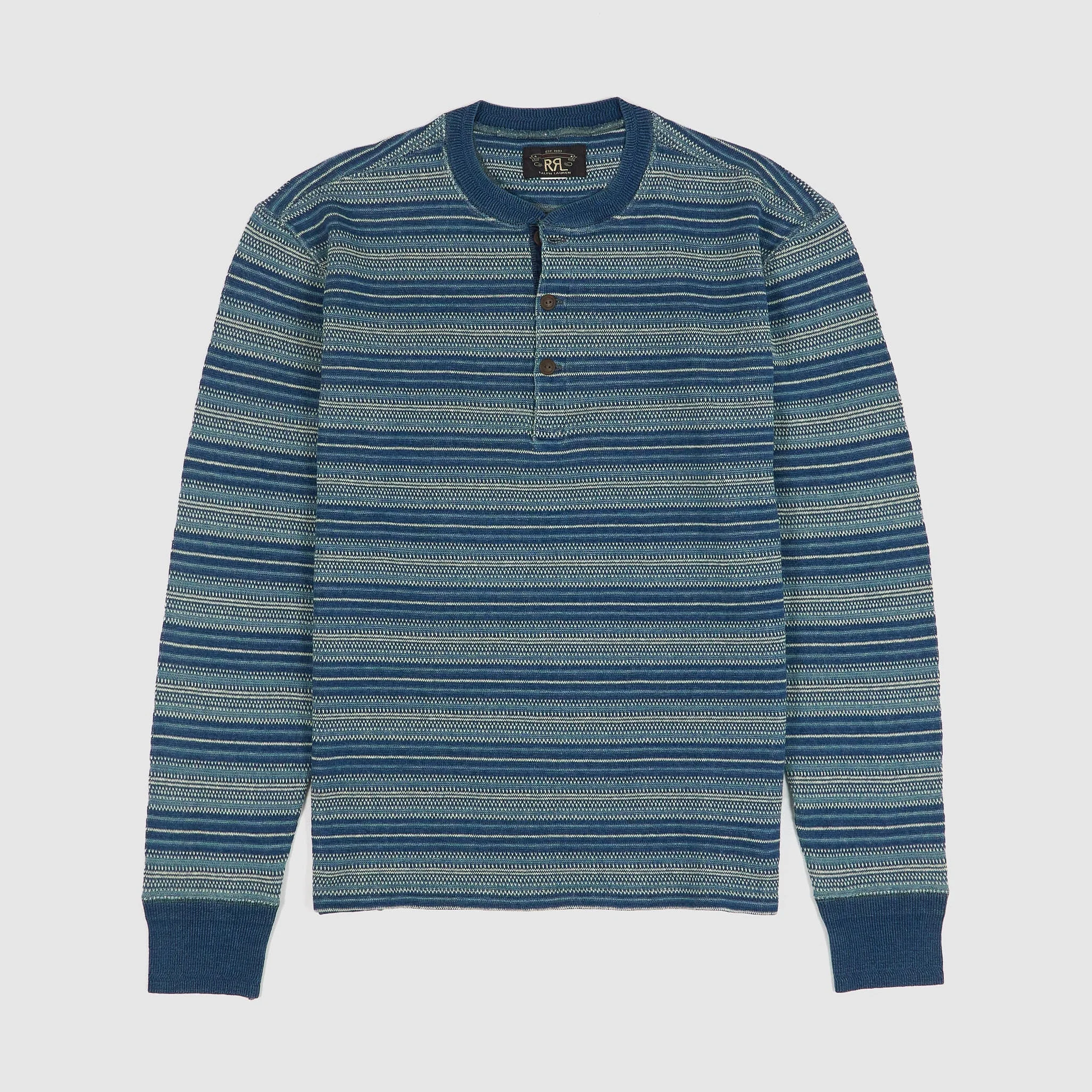 Double RL Long Sleeve Indigo Jacquard Henley Shirt