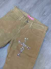 Best size. Only pair you’ll ever see for sale in this condition. Junya Watanabe, AD2003. Amazing Chinos with bejeweled cross on left leg. Jewels are pink and look super sick in person. Immaculate condition Size M, waist is 33”. Ships in US only. No returns - I am not responsible if something doesn’t fit how you expected. Please contact me with any questions.