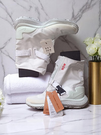 Introduced in 2017, the Nike Wmns Gaiter 'Barely Green' has a high-top silhouette made of waterproof leather and textile, with a zipper and buckle closure over a high inner sock. A light green, sturdy heel clip holds down the foot in the back and leads into a midsole overlay of the same color. The rugged outsole comes in a unique, weather-ready traction pattern to round out the wintry look. Pre-Owned. • SKU: AA0528-100 • Size: US 9 / EUR 40.5 • Colorway: White / Black-Pure Platinum-Barely Green • Condition: Like new with tags + VC authentication • Retail: $250.00 USD • Release date: 01/12/2017 Ready-to-ship worldwide via premium carriers (DHL Express, FedEx, UPS) within 24 hours after auction closed. *Instruction for International Buyers: Estimated Delivery: About 5~10 days with Tracking Number. Import duties, taxes, and charges are not included in the item price. These charges are the buyer's responsibility. Please check out your country's customs office to determine what these additional costs will be prior to bidding or buying. #nikelab #nsw #snkrs #sneakers #preowned #techwear #techwearshoes #avantgarde #minimalfashion #paleaesthetics #pastelaesthetics #deibido #auction