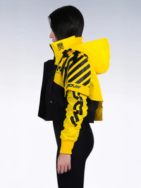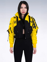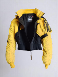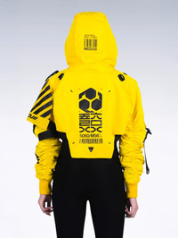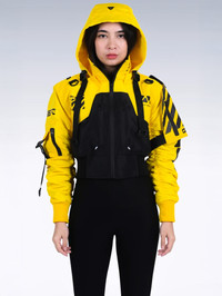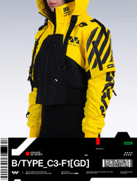 B/Type unisex crop jacket C3 GD variant by M56® - Machine5060™. An alternate design to the original FL_V1A series. Premium WP woven polyester fabric, high quality waterproof sealing front zipper. Light weight build, wrapped with M56 new standard issue sharp cut DTF print graphics. SD-A1 arm sleeves compatible. Available now at REVERSIBLE.COM Soldout everywhere. No restock expected. [ Product details ] - Cropped fit. - Removable Hood. - Sharp cut DTF print graphics. - 6 Compartments. - SD-A1 arms compatible included. - Made in Indonesia • Size: XL • Condition: Brand New with tag • Designer: Rajaya Yogaswara aka. YOGA/MAC. Ready-to-ship worldwide via premium carriers (DHL Express, FedEx, UPS) within 24 hours after auction closed. *Instruction for International Buyers: Estimated Delivery: About 5~10 days with Tracking Number. Import duties, taxes, and charges are not included in the item price. #m56 #rajayayogaswara #machine56 #machine5060 #techwear #urbanstreetwear #kurowear #unisex #crop #jacket #avantgarde #acronym #indonesianfashion #deadstock #limitededition #cyberpunk #futurefashion #blackandyellowaesthetics #auction